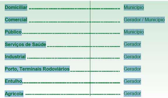 RESPONSABILIDADE SOBRE OS RESÍDUOS (ver quadro abaixo)